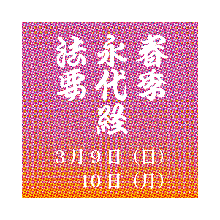 2025年3月9日(日)ー10日(月)法話(仏教のお話):武田英照 師(三木町 願勝寺) 日程 (各日)朝10時からお勤めその後法話 武田英照 師お斎(おとき=仏事の時にみんなでいただく食事)終了・・ 「永代経(えいたい […]